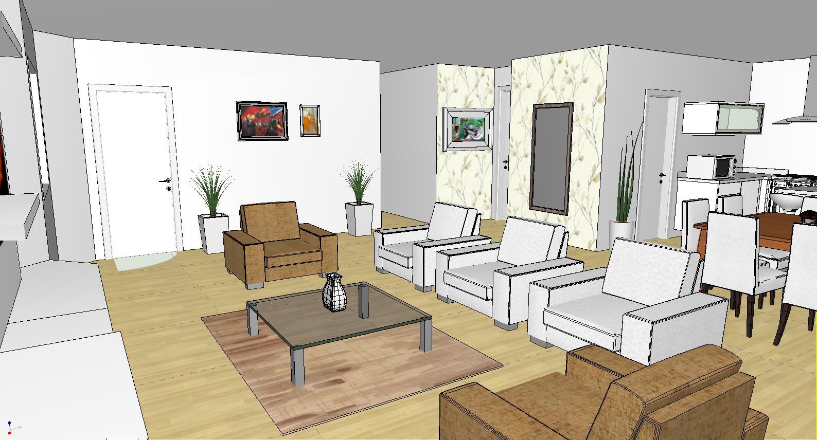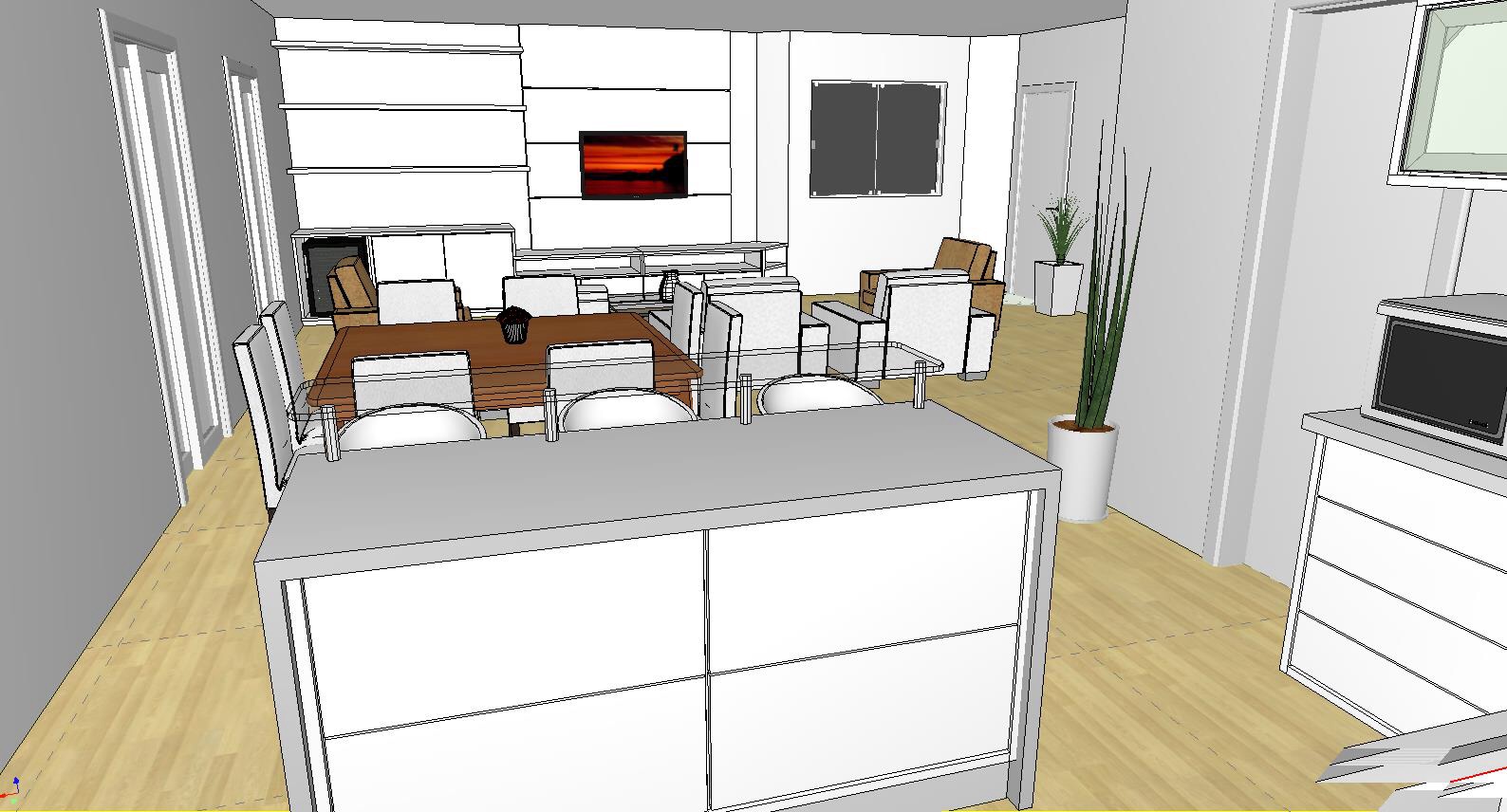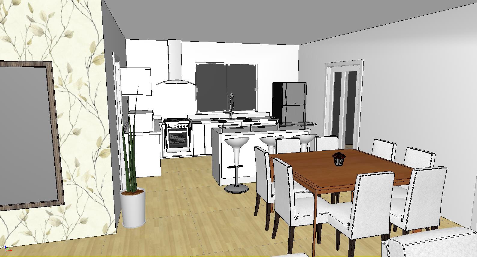 Projeto de interiores Postado em 13 de agosto de 2015 por mariaignezdeluno 0 Projeto de interiores para apartamento com revestimentos claros. Cozinha integrada e varanda gourmet.